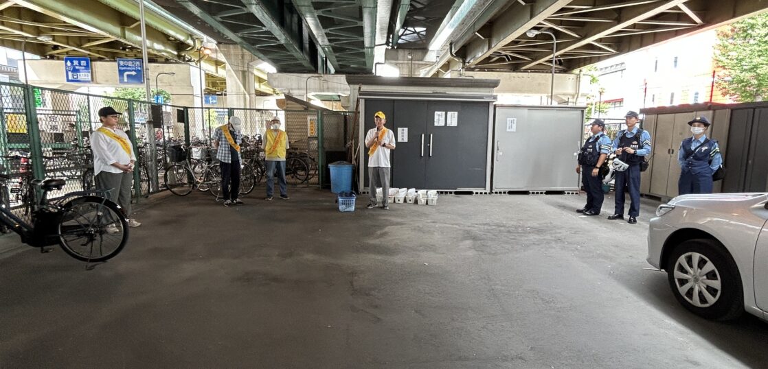 9月24日(水)午後1時30分から、阪急南方駅周辺において、西中島クリーンデーを実施しました。淀川警察署、淀川区役所、警友会、大阪市建設局、宅建協会等、20名のご参加を頂きました。放置自転車や看板はみ出し等の警告ステッカーを貼付しながら、注意喚起を呼びかけました。