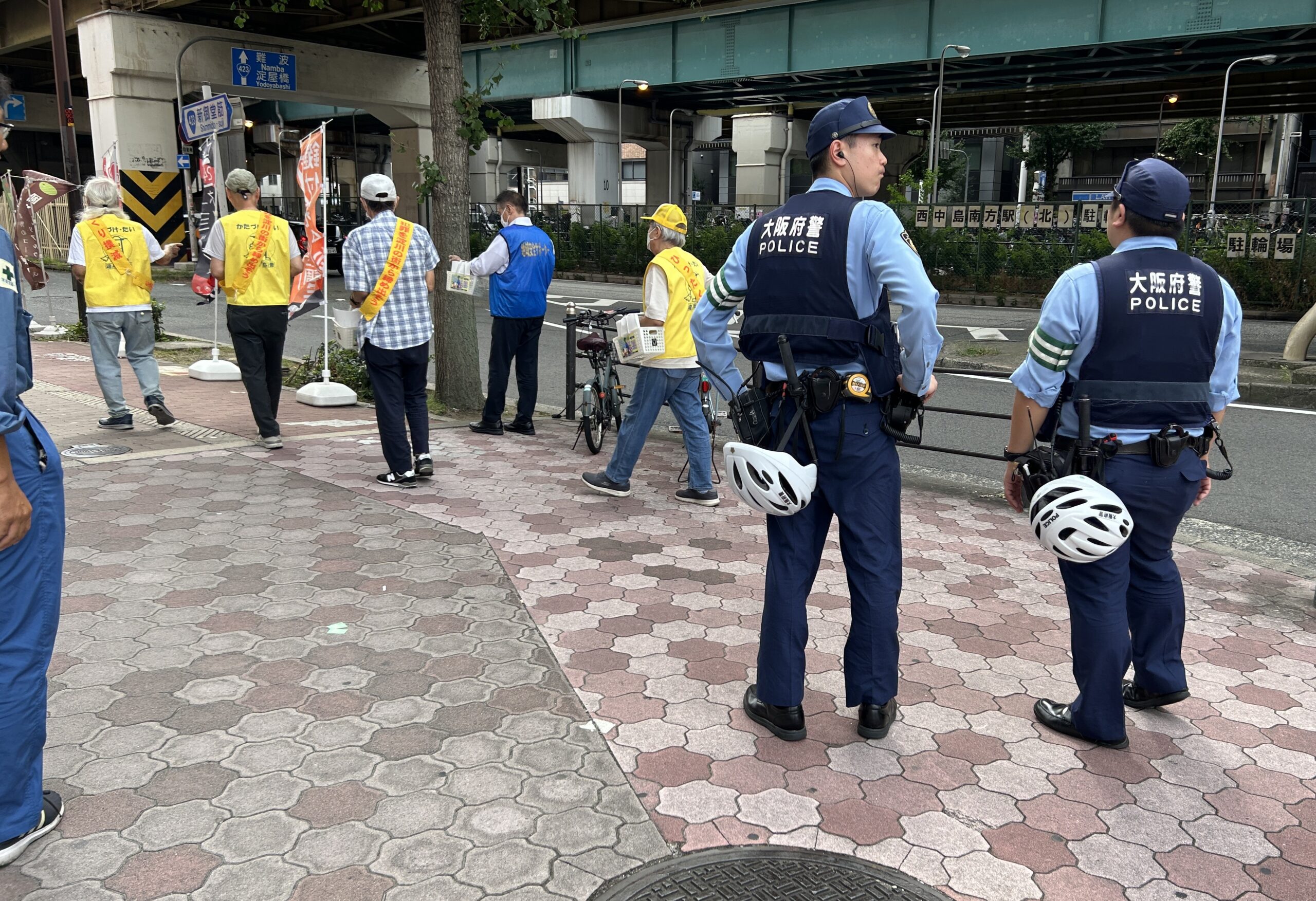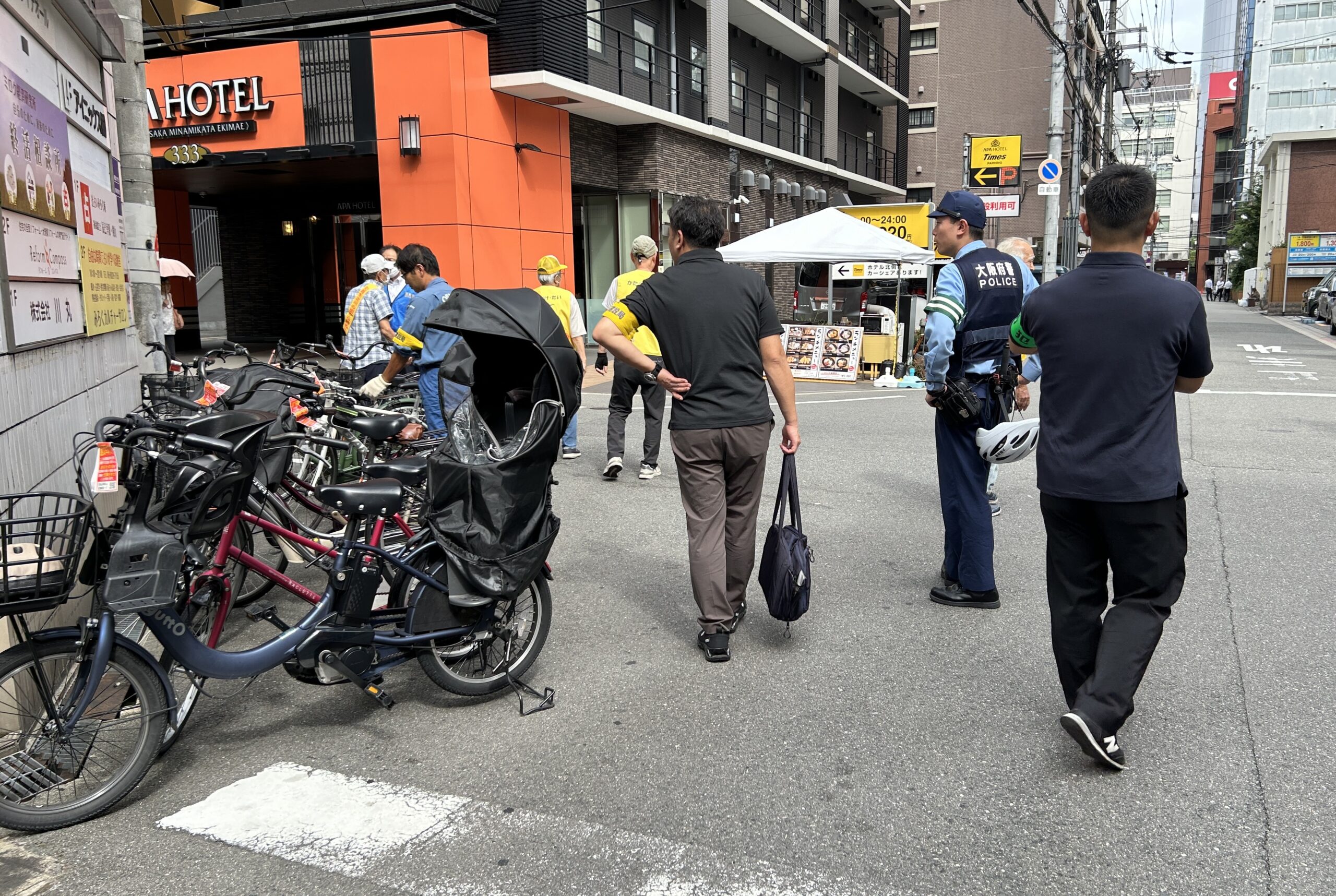 9月24日(水)午後1時30分から、阪急南方駅周辺において、西中島クリーンデーを実施しました。淀川警察署、淀川区役所、警友会、大阪市建設局、宅建協会等、20名のご参加を頂きました。放置自転車や看板はみ出し等の警告ステッカーを貼付しながら、注意喚起を呼びかけました。