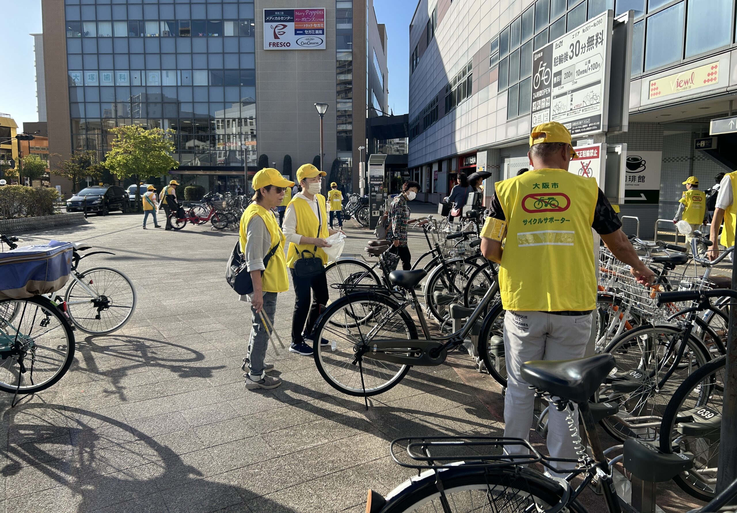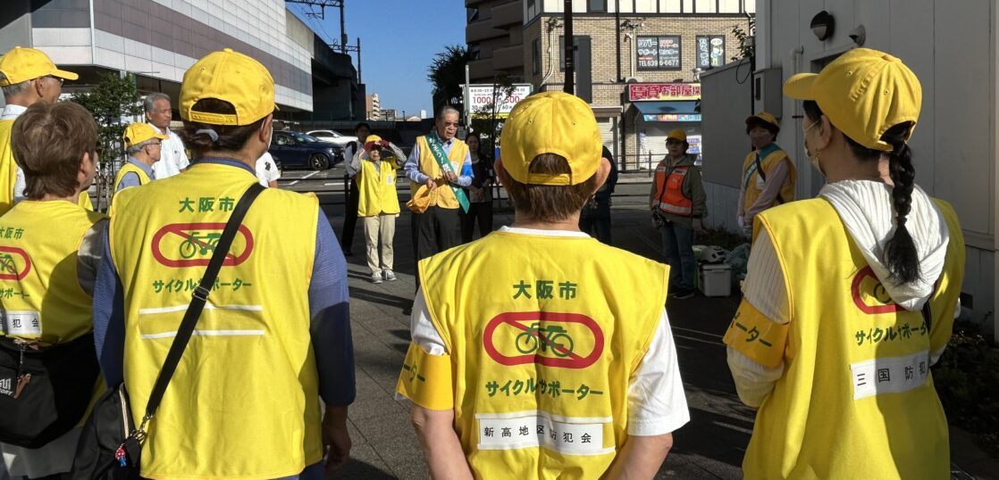 10月9日(木)午前八時から、阪急三国駅前周辺において、三国クリーンデー並びに放置自転車対策部会活動を実施しました。三国連合振興町会、淀川区役所、阪急三国駅の方々に加え、放置自転車対策部会として三国地区・宮原地区・西三国地区・新高地区と約25名の参加を頂きました。淀川区地域振興会三前会長より、ご挨拶を頂き「月に3回行っているクリーンデーも定着し地域に浸透してきているので、放置自転車もだいぶ少なくなってきました。」ということでした。