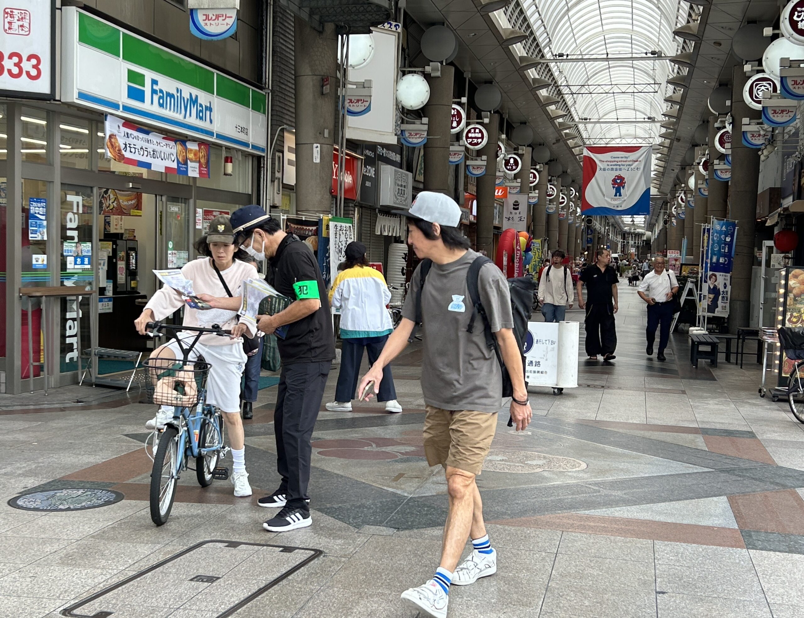 10月16日(木)午前10時から、十三フレンドリー商店街周辺において、特殊詐欺被害防止キャンペーンを実施しました。淀川警察・淀川区役所・明治安田生命・十三地区防犯会・神津地区防犯会・新北野地区防犯会の皆様にもご協力頂きました。特殊詐欺の被害を未然に防止するため、啓発品を配布して声掛けを行ないました。16名の参加となりました。
