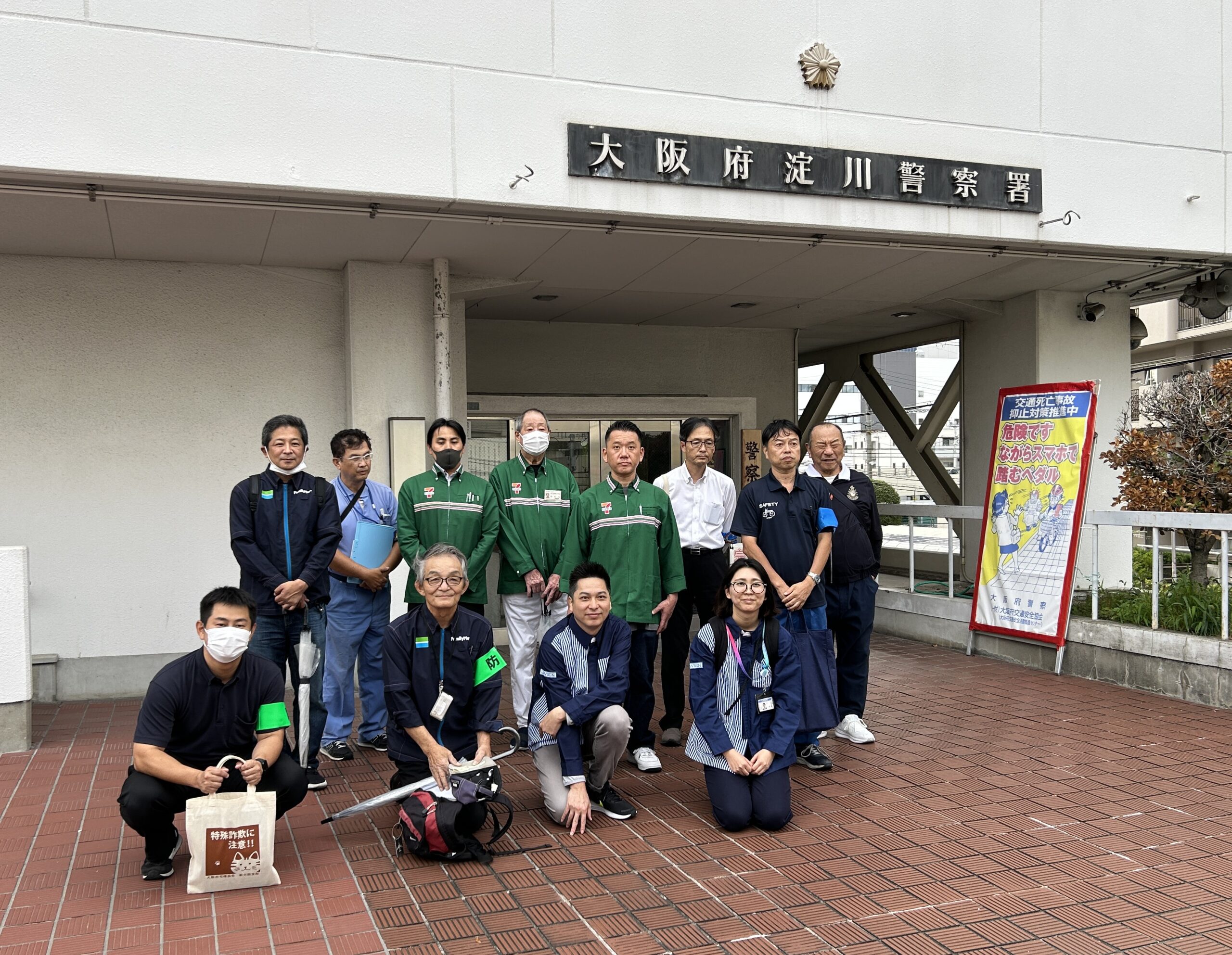 地域安全運動最終日となりました、10月20日(月)午後2時から、コンビニ連絡協議会臨店合同パトロールを実施しました。コンビニ連絡協議会西岡会長にもお越し頂き、「地域安全運動最終日となります本日、年末に向けて横行している特殊詐欺を未然に防ぐため、コンビニにしかできない声掛けもあると思いますので、皆さんご協力お願い致します。」とご挨拶を頂きました。淀川警察、淀川区役所、セブンイレブン、ファミリーマート、ローソンの方々、15名の参加を頂きました。2班に分かれて、特殊詐欺被害防止の声掛けを行ないました。