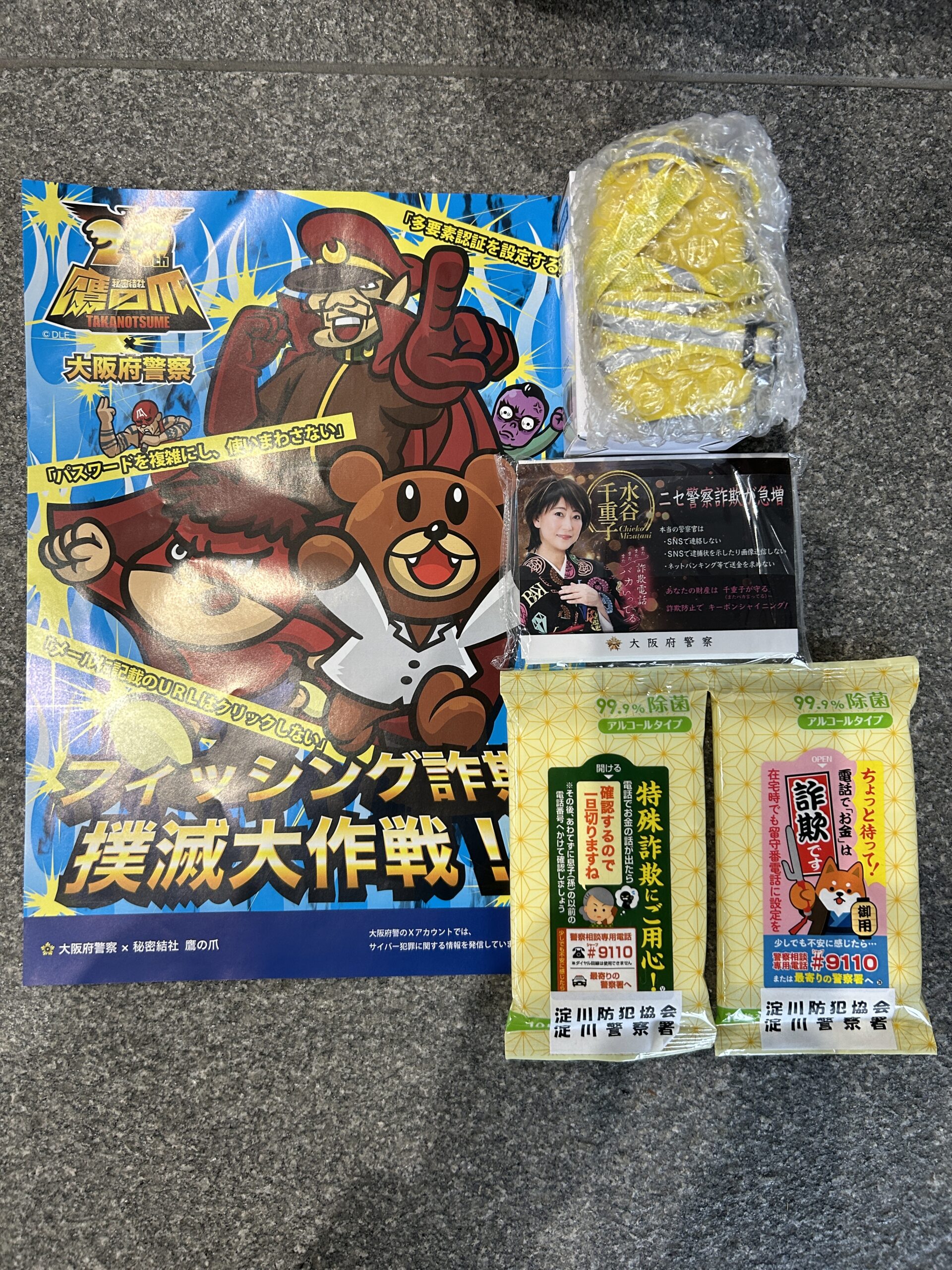 1月13日(火)午前10時から、淀川区役所周辺において、安全・安心まちづくりの日キャンペーンを実施しました。淀川警察署防犯係、太田黒係長より、「令和7年度中の大阪府下での特殊詐欺の被害額は、令和6年度の約2倍増加している。引き続き広報活動をお願いします。」とお話が、ありました。啓発品を配布して、声掛けを行ないました。