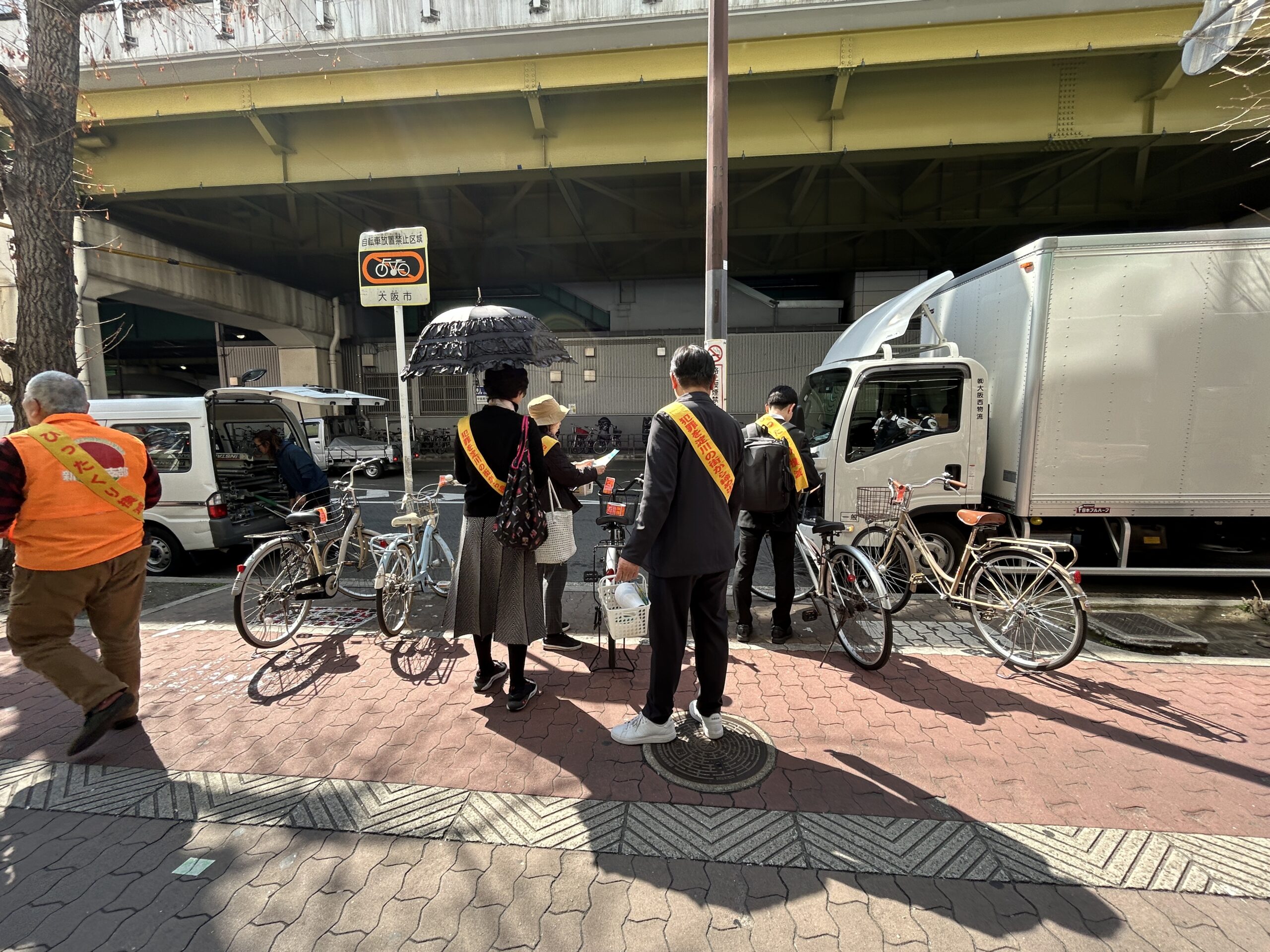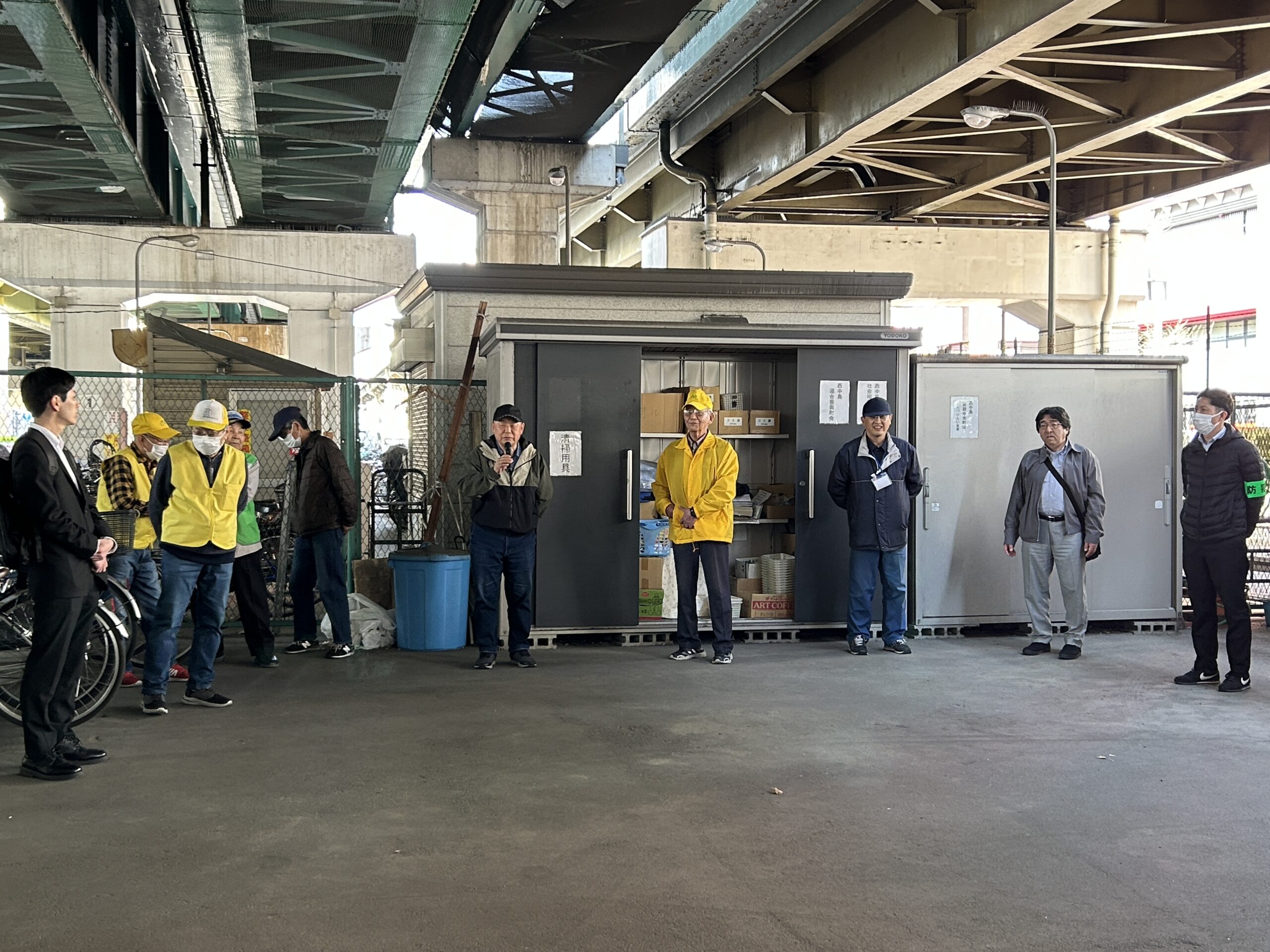 3月24日(火)午後1時30分から、西中島南方駅・南方駅周辺において、西中島クリーンデーを実施しました。淀川警察署、淀川区役所、大阪市建設局、宅建協会、西中島地区防犯会等、約25名の参加を頂きました。はみ出し広告看板の撤去啓発並びに放置自転車の撤去警告のシール巻き付けを行ないました。警察署・区役所・地区会長から「撤去啓発・警告は、いたちごっこであるため行政の協力が、不可欠であること。」「啓発は、継続が必要であること。」「西中島クリーンデーは、昭和35年から70年続いていること。」等それぞれお話が、ありました。