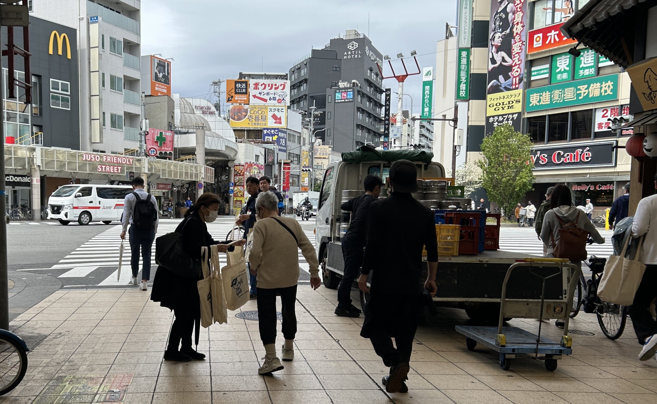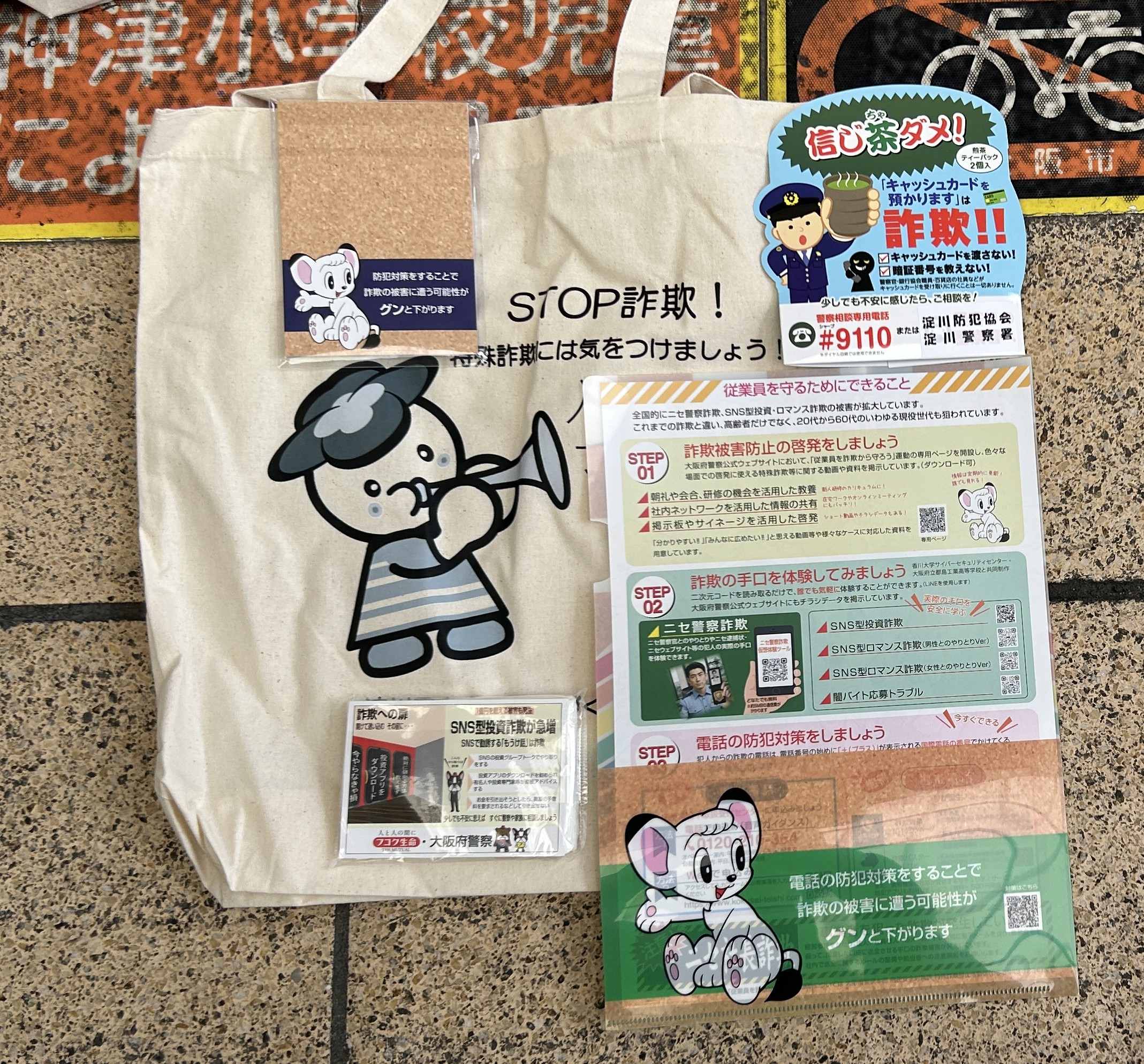 4月15日(水)午前10時から、三菱UFJ銀行十三駅前支店周辺において、年金支給日キャンペーンを実施しました。淀川警察署、淀川区役所にもご協力頂き、特殊詐欺被害防止の啓発グッズを配布して、声掛けを行ないました。
